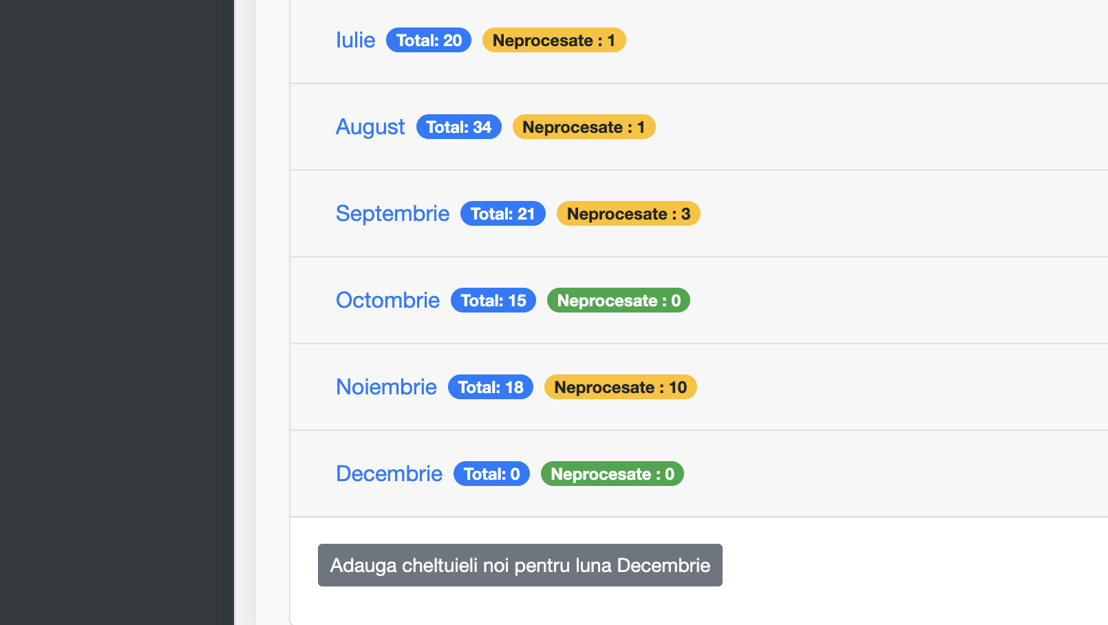 Click pe luna dorita dupa care click pe "Adaugare cheltuieli noi pentru luna ..."
